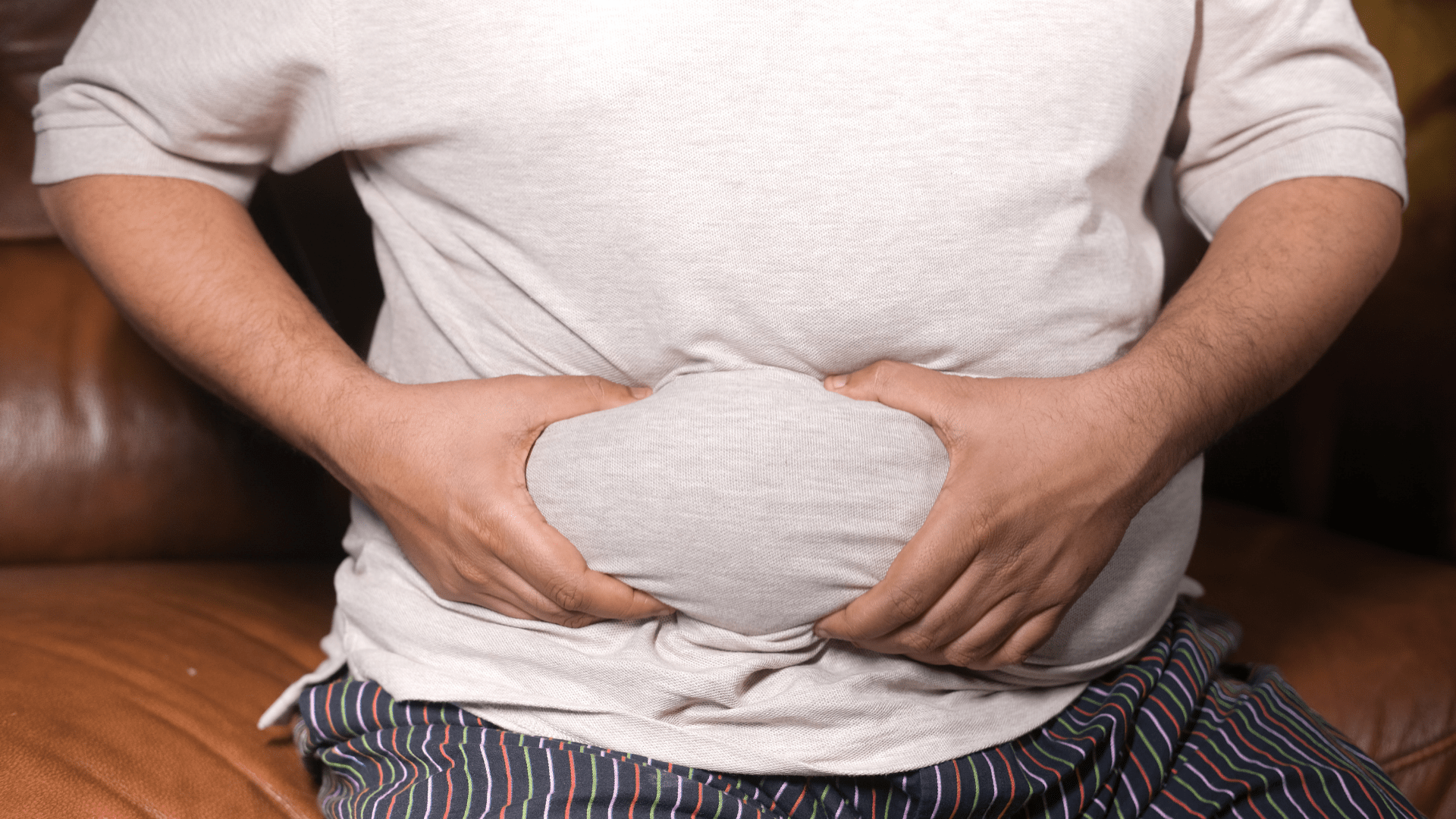 - 腹水或肿瘤(卵巢癌): 腹水或肿瘤会将腹部从内往外顶出,导致腹部在短时间内明显隆起,外观有如「大肚腩」,但可能四肢仍保持纤瘦。部分患者会发现肚脐深度变浅,甚至向外凸出。