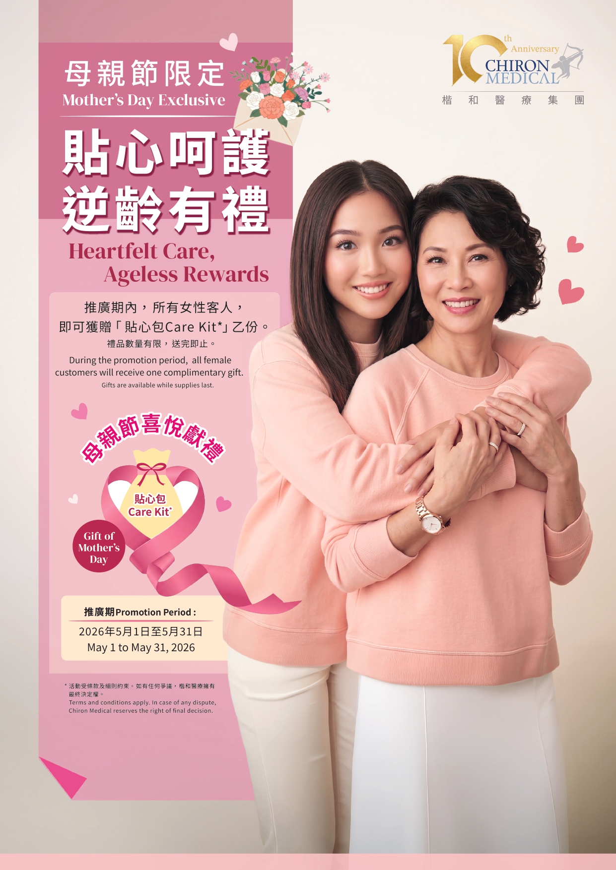 Many women devote themselves tirelessly to their families, often placing their own needs last and overlooking the subtle signals from their bodies. When symptoms such as hot flashes, night sweats, and insomnia begin to affect daily life, it is not something to simply endure-it is a reminder that it is time to pause and care for yourself. This May, under the theme "Heartfelt Care, Ageless Rewards", Chiron Medical launches a limited-time Mother's Day gifting campaign, encouraging women to better understand the changes that come with menopause and to take a more proactive approach to their overall well-being.