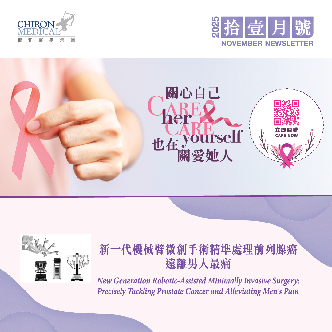 楷和医疗泌尿科专科邹衍医生指出,前列腺癌若发现得早,病人可考虑近年常见的新一代的达文西Xi机械臂微创手术,能够精准切除肿瘤与前列腺,同时保留尿控相关的组织及控制勃起功能的神经线,从而减少上述提过的并发症,免却病人疑虑。